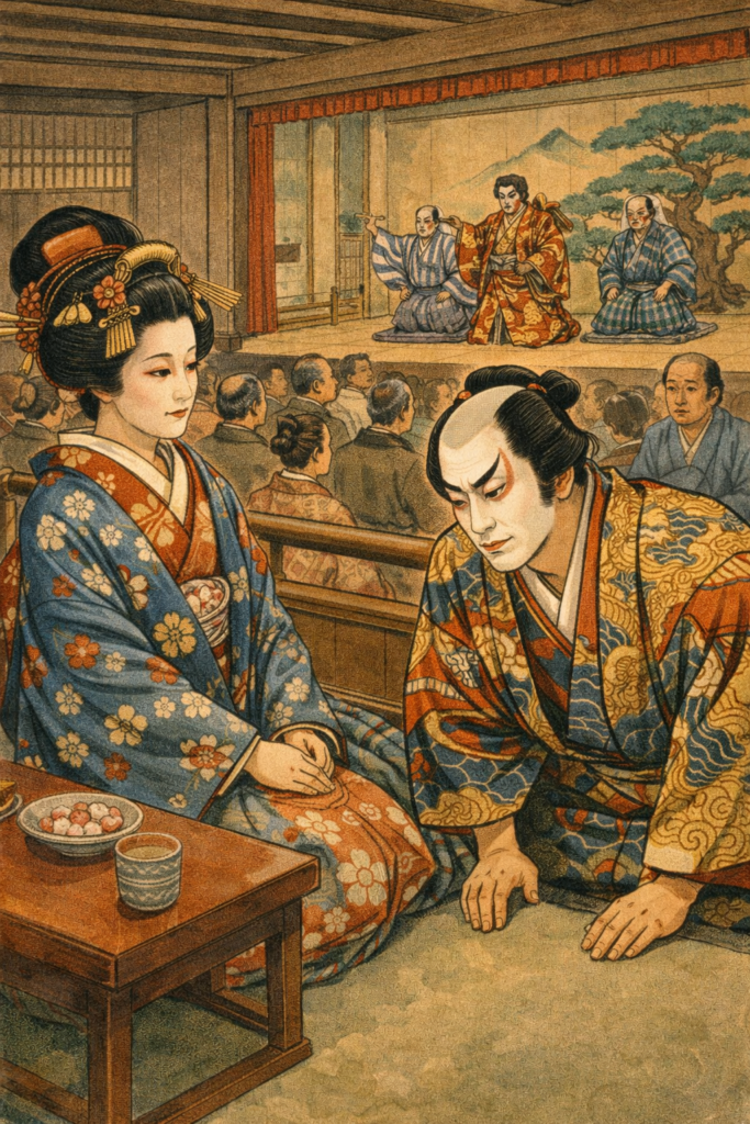 ・In 1714, it was discovered that Ejima Tomo, lady-in-waiting of the Ooku, had attended public performance at the Yamamura-za on her way back from a pilgrimage to Zojo-ji Temple and had invited the popular actor Ikushima Shingoro to banquet. As a result, Eijima, Ikushima, and others involved were severely punished, and the Yamamura-za was forced to close. As a result, the number of officially licensed theaters in Edo was reduced to three: Nakamura-za, Ichimura-za, and Morita-za.